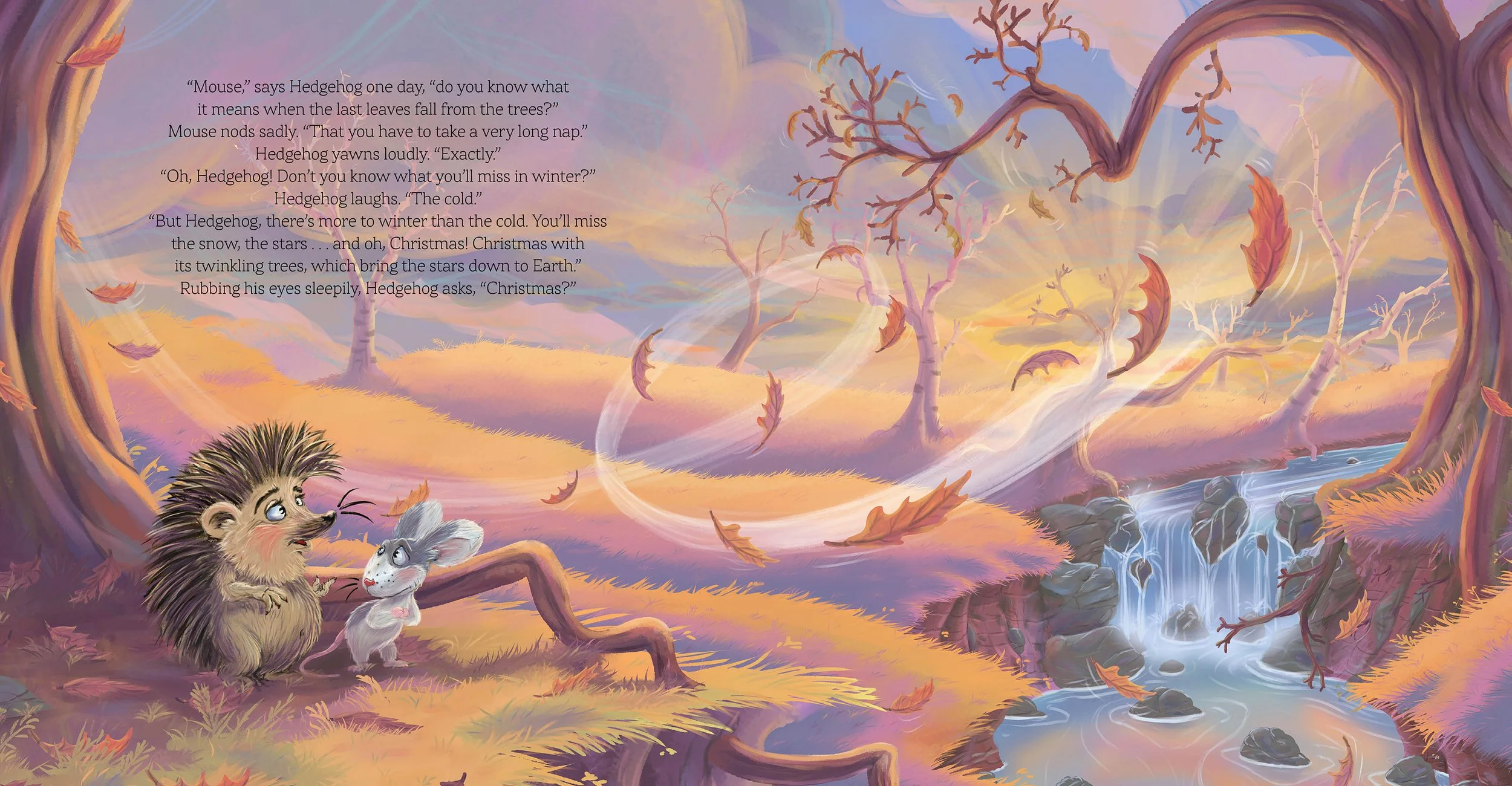 While Hedgehog gets ready to hibernate, Mouse dreads a lonely Christmas. Just before Hedgehog dozes off, he whispers, “I’ll be there, Mouse. I promise.” But later when Mouse finds Hedgehog’s nest empty, he’s overcome with fear. To help Hedgehog find his way home, Mouse decides to decorate the largest tree in the forest with beautiful lights.